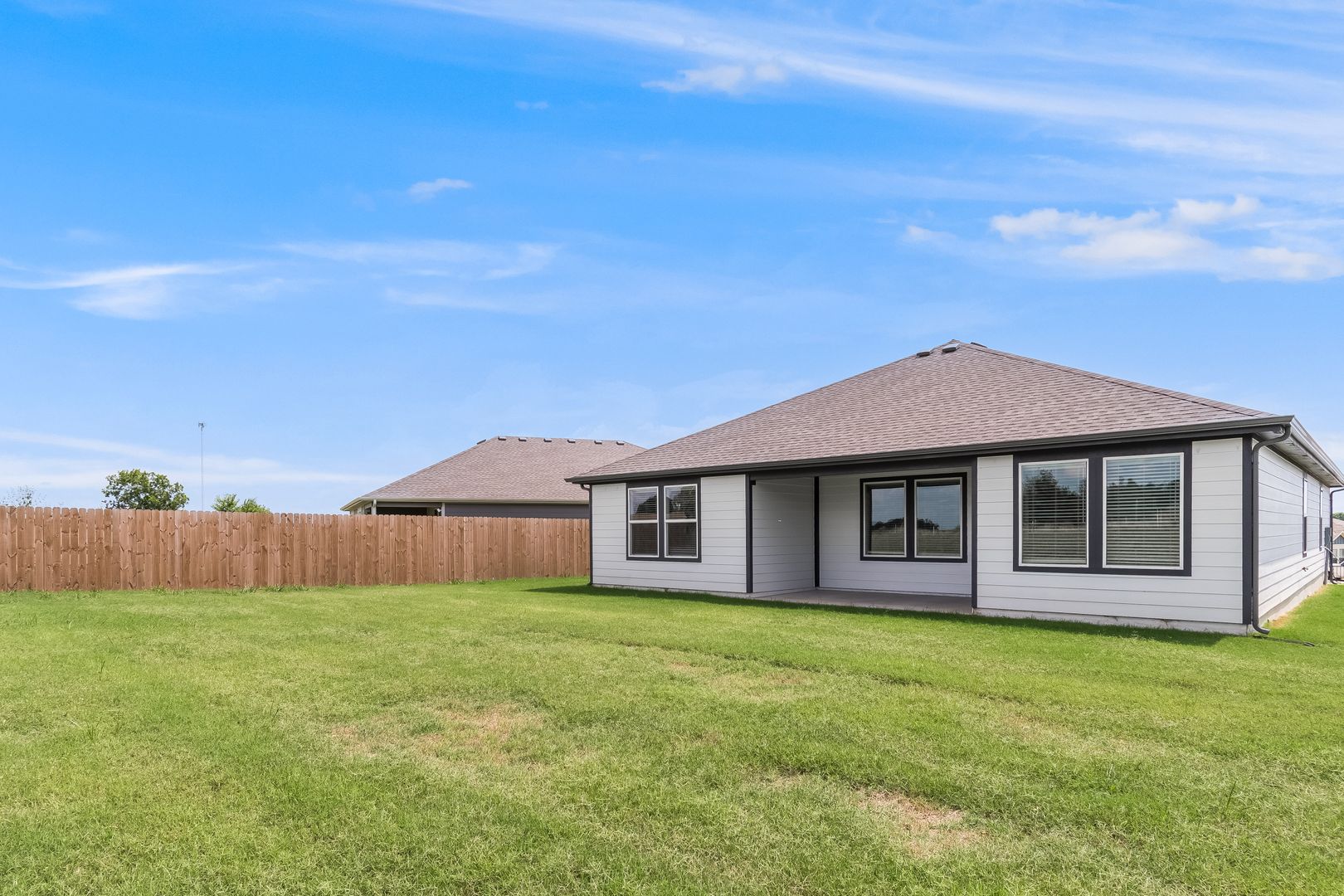 Welcome to your brand new home in Highfill, AR! This stunning property boasts four spacious bedrooms and two full bathrooms, offering ample space for all your needs. The open layout of the living room and kitchen creates a welcoming atmosphere, perfect for entertaining or simply enjoying your day-to-day activities. The kitchen is designed with modern conveniences in mind, making meal preparation a breeze. The home also features a two-car garage, providing plenty of storage and parking space. Step outside to discover a huge backyard, a perfect canvas for your outdoor dreams. Whether you're hosting a summer barbecue or enjoying a morning coffee, the covered back patio and privacy fenced in back yard offers a comfortable outdoor living space. This home is waiting for you to fill it with memories!